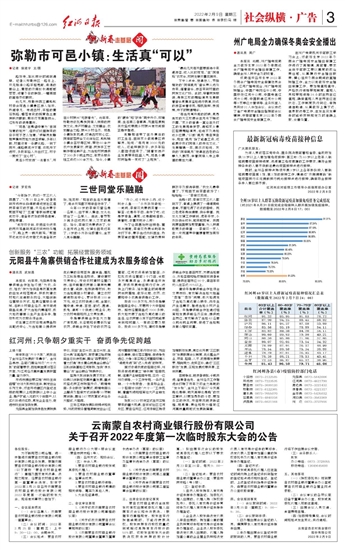 为不断规范公司治理,进一步推进云南蒙自农村商业银行股份有限公司业务发展,根据云南蒙自农村商业银行股份有限公司(以下简称“蒙自农村商业银行”)章程及国家有关法律、法规之规定,经蒙自农村商业银行第一届董事会决定,拟定于2022年2月25日召开云南蒙自农村商业银行股份有限公司2022年度第一次临时股东大会。现将有关事项公告如下:
