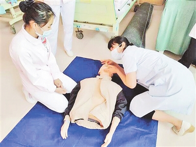 在随后进行的应急人员能力提高培训中,州妇幼保健院对护理人员进行了双人心肺复苏操作考核。参加考核的护理人员严格按照心肺复苏考核标准进行操作,动作流畅、一丝不苟、毫不懈怠。整个考核现场气氛紧张、秩序井然,监考老师认真记录,从物品准备、环境评估、人文关怀等方面进行评判、指出不足、查漏补缺。