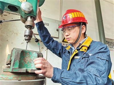 2013年大专毕业后,陆国雄进入西南铜业分公司熔炼分厂,成为一名维修钳工。陆国雄暗下决心,一定要珍惜机会,用努力奋斗来实现人生价值。刚入职的他连扳手尺寸和螺丝型号都分不清,专业技能之路并不轻松。至今陆国雄依然清晰地记得,第一天去班组跟着师父换水泵,他拿着扳手使出最大劲紧固螺丝,反而因用力过度把水泵螺丝拧断在底座里,让师父花了一下午时间才“善后”。惭愧万分的他暗暗发誓:一定要刻苦钻研,苦练本领!