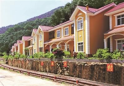 绿水青山,潺潺流水,走进河口县城郊村八条半村民小组,蔚蓝的天空下,一排排整齐划一的米黄色两层小楼格外醒目,滇越铁路穿村而过,村前有南溪河缓缓流淌,每家每户门前都种了些许蔬菜,加上绿树和村后青山的衬托,这里仿佛是一幅美丽的山水画卷……这是一座抵边村寨,通过小康示范村建设的带动,八条半村从一个清灰冷灶的穷山沟华丽蜕变成了全县的小康示范村。