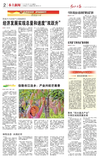 本报讯 近年来,红河县积极落实国家东西部协作政策,协调各方资源,引导发展订单农业,不断推广“公司+基地+合作社+农户”经营模式,强化农业技术指导服务,确保企业订单回收,助农增收。