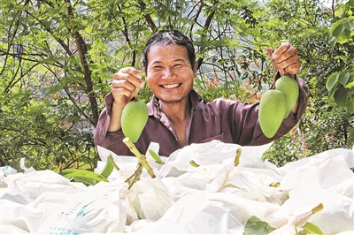 “中央退耕还林政策实施前,村民年人均纯收入3900元,通过陡坡地治理和退耕还林政策实施以后,种了芒果,既绿化了荒山,又鼓起村民的‘腰包’,村民年人均纯收入突破1万元,昔日的荒山变成了村民今朝的‘绿色银行’。”矣厦村党总支书记、村委会主任何云辉说。