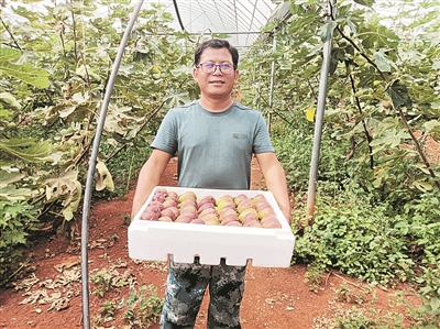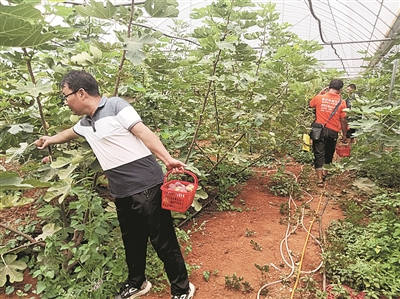 本报讯 8月秋高气爽,蒙自市雨过铺街道雨过铺村20亩无花果种植试验示范基地里,今年的第一茬无花果成熟,第二茬正次第开花,种植大棚内香甜四溢。