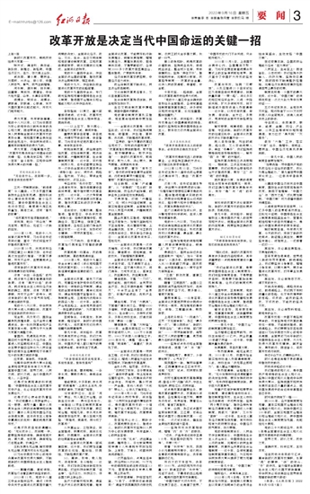 党的十一届三中全会,开启改革开放和社会主义现代化建设新时期。从党的十八大开始,中国特色社会主义进入新时代。党的十八届三中全会,开创改革开放新局面。下转3版 上接1版
