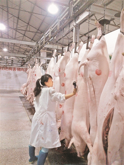 500多头经过检疫活蹦乱跳的生猪被送进屠宰车间,依次进入清洗机、烫池、刨毛机进行处理……技术先进的自动化设备、干净整洁的生产环境,为产品质量提供了有效保障。