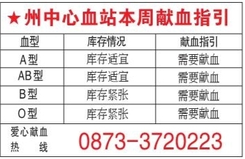 ★州中心血站本周献血指引