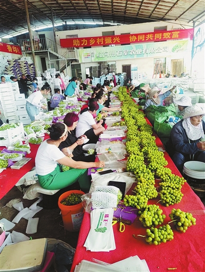 看着一箱箱即将外运的葡萄,胡石军笑着说:“今年园区种有500亩葡萄,其中‘阳光玫瑰’350亩、‘夏黑’150亩,平均亩产值在8万元至10万元左右。今年葡萄长得又好又甜,是个丰收年。”