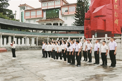 寻初心,增强党员“使命感”。在总体国家安全观屏边县教育培训基地,追忆为守护国家领土安全牺牲的革命烈士,在一段段红色故事中汲取精神养分;面对入党誓词墙,全体党员诵读了《党章》第三条关于党员义务的相关内容,在一声声誓言中不断增强“全心全意为人民服务”的初心使命。