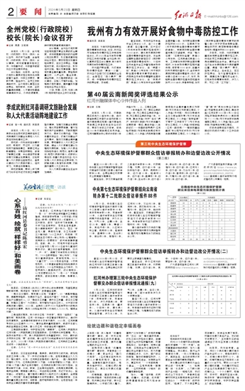 本报讯 5月22日,云南新闻奖评选办公室发布公告,由云南省新闻工作者协会组织的第40届云南新闻奖和第4届云南省优秀新闻工作者评选活动经过初评、复评及定评三级评审,评选出350件云南新闻奖优秀作品。红河州融媒体中心报送参评的9件作品分列一、二、三等奖名单。
