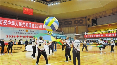 “加油,稳住!”观众席上,加油声、欢呼声此起彼伏,气氛热烈。从传统的气排球比赛到富有趣味性的巨型排球比赛,再到考验团队协作能力的乒乓球团体接力,每一个项目都充满了紧张与刺激。参赛选手精神饱满、全力以赴,不仅展示了个人风采,更体现了团结协作的精神。