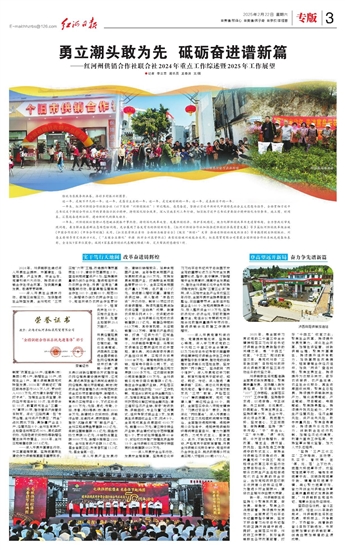 一年来,州供销联社坚持以思想破冰提振干事热情,持续深化改革攻坚、发展供销经济、维护系统稳定,致力化解供销改革历史遗留难题,全力整改巡审发现问题,着力解决基层群众急难愁盼问题,充分展现了奋发有为的供销新形象。《红河州供销合作社加快推进供销经济高质量发展》等多篇红河供销改革做法被《中国合作经济》《中华合作时报》采用,《扛实农资供应责任 全面助力粮食安全》《做实“供销+”文章 推动老供销社焕发新活力》等专报得到省供销联社、州委主要领导肯定性批示4次,《“五健全五强化”举措 抓牢全州农资供应》典型经验被州效能办采用;红农商贸有限公司荣获全国供销合作社系统先进集体表彰,全省仅9家单位获誉;收到4家基层供销社代表赠送锦旗1面、定点帮扶村感谢信1封。
