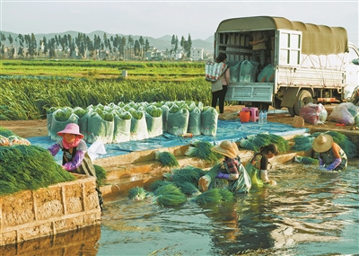 “一大早就来葱地干活,只要手脚麻利、动作娴熟,一天能有300元左右的收入,一年挣两到三万元不成问题。”中枢镇逸圃村村民周小艳开心地说。“政府帮我解决了就业难题,不用外出务工,在‘家门口’就能找到好工作,赚钱和顾家两不误。”