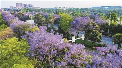 南湖的蓝花楹开时,整片湖区便浸在紫色的海洋里。西南联大蒙自分校纪念馆在紫色的花海里静立湖畔,泛黄的照片和文献,默默讲述着战火中的真知灼见。