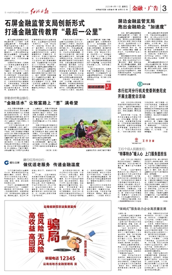 石屏金融监管支局创新形式 打通金融宣传教育“最后一公里”
