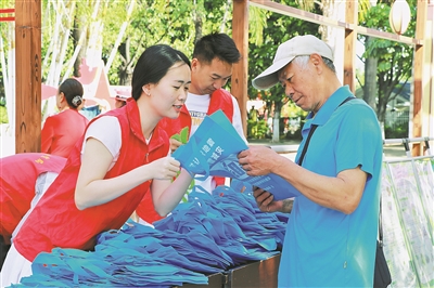 工作人员向群众讲解防震减灾知识。