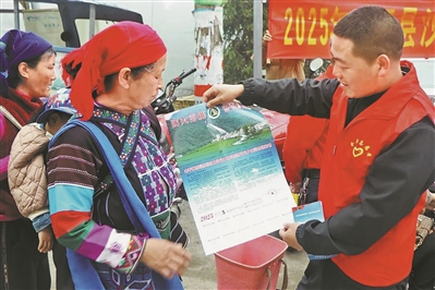 连日来,金平县沙依坡乡通过建机制、广宣传、强管控、严值守、提技能,多方位织密森林草原防火安全网。目前,该乡已设置9个防灭火卡点,组织全乡232名护林员每天对关键部位、重点林区开展拉网式巡查,全力保障森林资源和群众生命财产安全。图为工作人员向群众宣传森林防灭火知识。