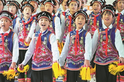 非遗传承,贵在创新。近年来,龙朋镇充分发挥国家级、省级、州级非物质文化遗产代表性传承人的作用,邀请后宝云、施万恒等民间艺人定期走进学校,把少数民族文化搬进课堂。在一代代师生的接力中,烟盒舞、海菜腔等项目持续绽放光彩,清脆的烟盒声与少年的欢笑声交织,绘就了民族文化生生不息的动人画卷。