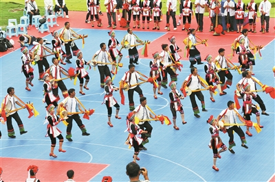 文山州带来的《欢庆》则将气氛推向一个小高潮。热烈奔放的舞步,翻飞的手巾,巧妙融合了传统手巾舞的动作韵律与现代体育舞蹈的动感节奏,释放出蓬勃的生命力与喜悦。作为东道主,弥勒的节目同样精彩纷呈。《阿细啦啦操》活力四射,青春的律动感染着每一位观众;而彝族《霸王鞭舞》则饱含深情,清脆的鞭声与沉稳的舞步,诉说着古老民族的文化密码和深沉韵味。