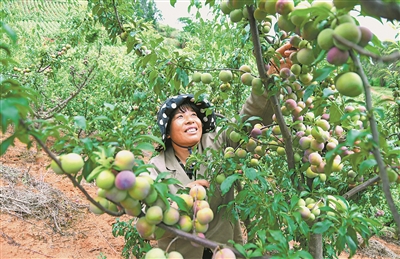 近日,弥勒市巡检司镇龙树村委会龙树村民小组迎来李子丰收。近年来,巡检司镇利用山区资源优势,探索发展李子种植,清甜、香脆、口感好的李子吸引了众多外地客商到田边收购,李子种植在改善生态环境的同时,也成为农民绿色增收的“摇钱树”。图为果农正在采摘李子。