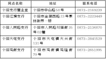 感谢您对我们工作的理解,并希望得到您一如既往的支持。详情请咨询中国工商银行股份有限公司个旧支行各营业网点,或者致电0873-2131175