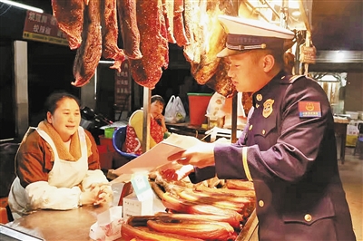 大图为消防人员深入市场开展专项检查。