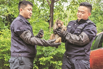 本报讯 近日,元阳县公安局森林警察大队接到群众报称:其与朋友在南沙镇者那河野炊期间,有一只独居的野生小猴来缠抱其讨要食物,经多次驱赶也不离开,有随好心群众回家的倾向。因担心该独居小猴有遭猎捕杀害的可能,特请求大队人员前来处理。