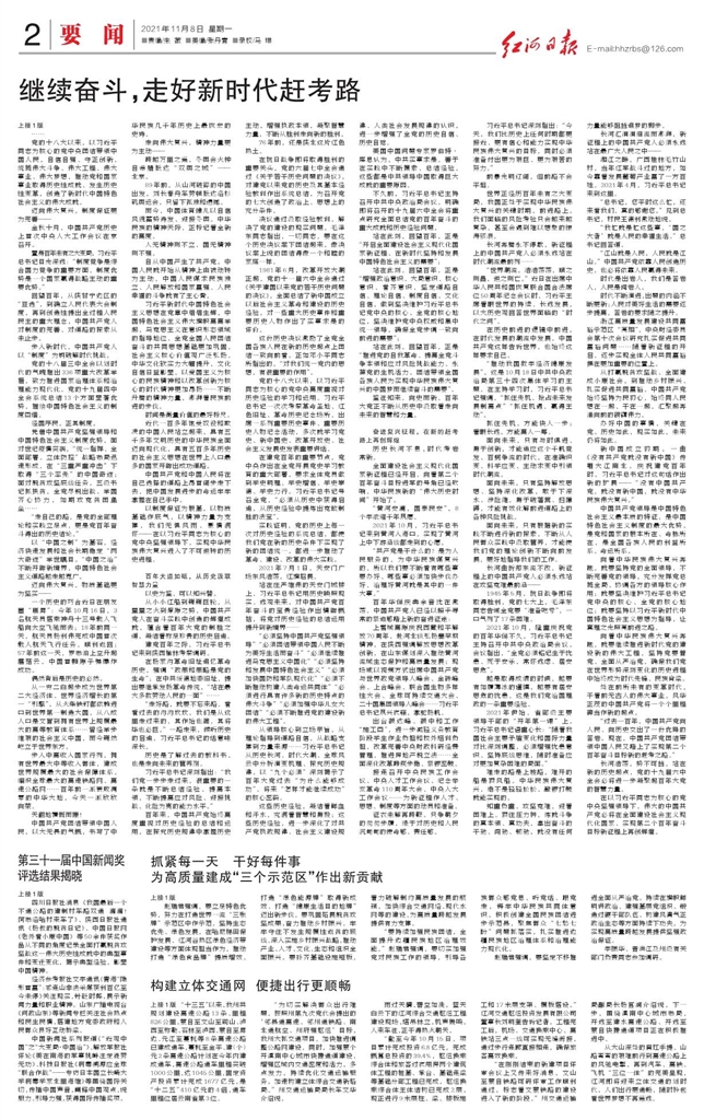 - 继续奋斗,走好新时代赶考路 上接1版 …… 党的十八大以来,以习近平同志为核心的党中央团结带领中国人民,自信自强、守正创新,统揽伟大斗争、伟大工程、伟大事业、伟大梦想,推动党和国家事业取得历史性成就、发生历史性变革,