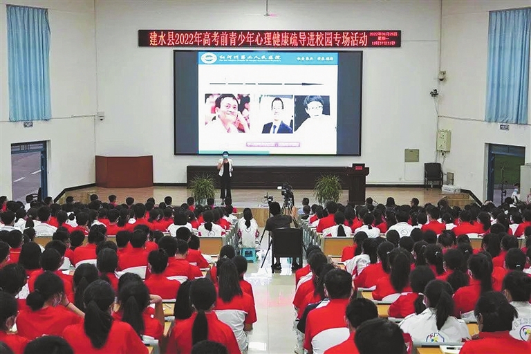 为进一步缓解高三学子考前心理压力,帮助学生调整心态,以良好的状态冲刺高考、迎接高考。4月25日,建水县妇女联合会、建水县融媒体中心、建水县卫生健康局、建水县教育体育局联合红河州第二人民医院,走进建水县第六中学开展“健康与你同行 微笑面对高考”2022年高考前青少年心理健康疏导进校园专场活动。