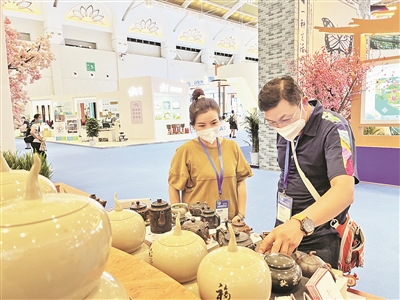 匠心独运的千年建水紫陶,巧夺天工的个旧锡工艺品,精美绝伦的彝族、苗族刺绣,色香味俱佳的建水、石屏豆腐及豆制品……步入红河展区,丰富多彩的民族手工艺品以及文创产品、旅游商品集体亮相,为全国各地的客商、游客送上独具“红河味道”的文化盛宴。