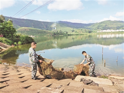 在库塘清退后,该镇切实履行乡镇管理职权,通过镇、村联合,针对鱼竿钓鱼、撒网捕鱼、电瓶电鱼等违规行为,进行广泛宣传告知、耐心劝阻和依法制止,有效维持了库塘区域正常秩序。今年以来,镇、村联合巡查队坚持常态化巡查,劝阻群众460多人次,收缴渔网、钓箱、鱼竿等违规渔具300多件。“库塘清退后,留下的部分养殖鱼,一时间成了不少群众的渔猎目标,加重了库塘水体和岸边环境的污染。”该镇综合维稳队队长李国庆说,通过依法依规管理,得到了群众的理解和配合,目前库塘区域秩序持续向好,库塘区域生态得到快速恢复。