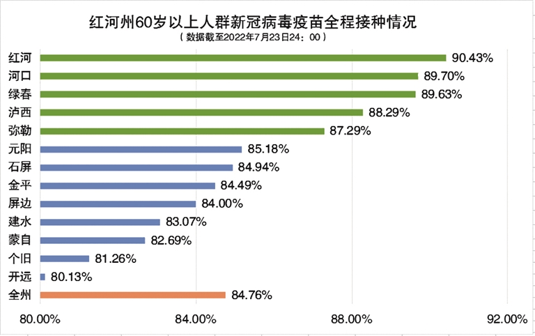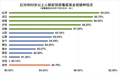 红河州60岁以上人群新冠病毒疫苗全程接种情况