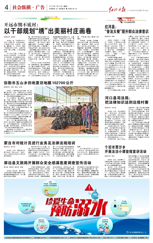 - 河口县司法局:把法律知识送到边境村寨 ●通讯员 刘玉萍 本报讯 近日,河口县司法局以“美好生活·民法典相伴”活动为契机,组织工作人员到瑶山乡的边境沿线村民小组,开展“法治走边关”“法治宣传固边防”系列活动,旨在促进边境地区和谐