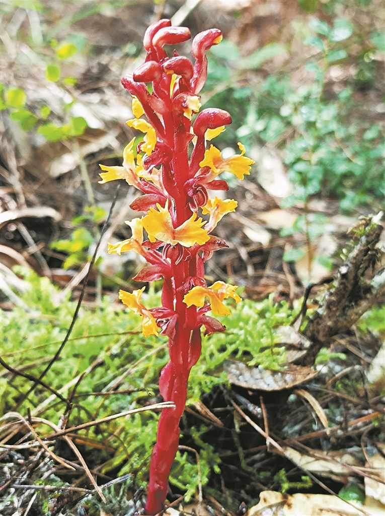 本报讯 近日,弥勒市西二镇镇级林长在落实林长制巡林工作中发现几簇紫红色的花儿,出于好奇随手拍了下来。后经植物专家实地鉴定,此花为濒危野生动植物种国际贸易公约附录Ⅱ物种——齿爪叠鞘兰。本次发现属弥勒市首次,州内第二次。