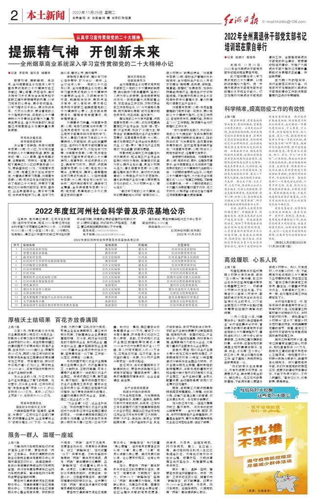 - 2022年全州离退休干部党支部书记培训班在蒙自举行 ●记者 赵婧汁 敖俊华 本报讯 11月28日,2022年全州离退休干部党支部书记培训班在蒙自开班。 此次培训围绕深入学习贯彻党的二十大精神,以党的创新理论为指引,进一步提升离退休干部