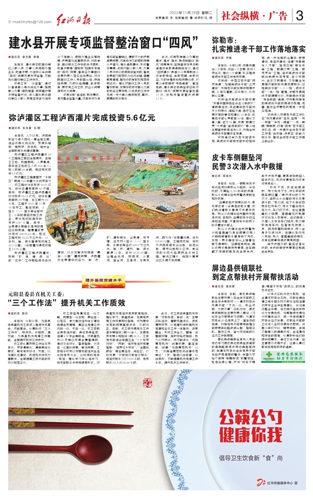 - 皮卡车侧翻坠河 民警3次潜入水中救援 ●记者 吴富水 本报讯 近日,一辆载货皮卡车行至河口县桥头乡路段一采石场时,不慎坠入50米深的河道。桥头乡边境派出所民警迅速前往现场救援。 “出事的地方坡度比较大,幸好旁边有一条黑色