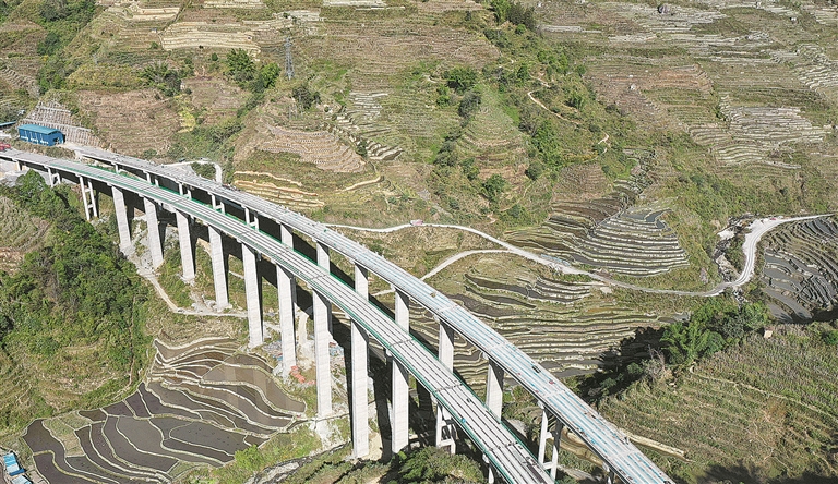 本报讯 日前,元绿高速公路项目过者洛巴河大桥完成T梁架设,全桥贯通。