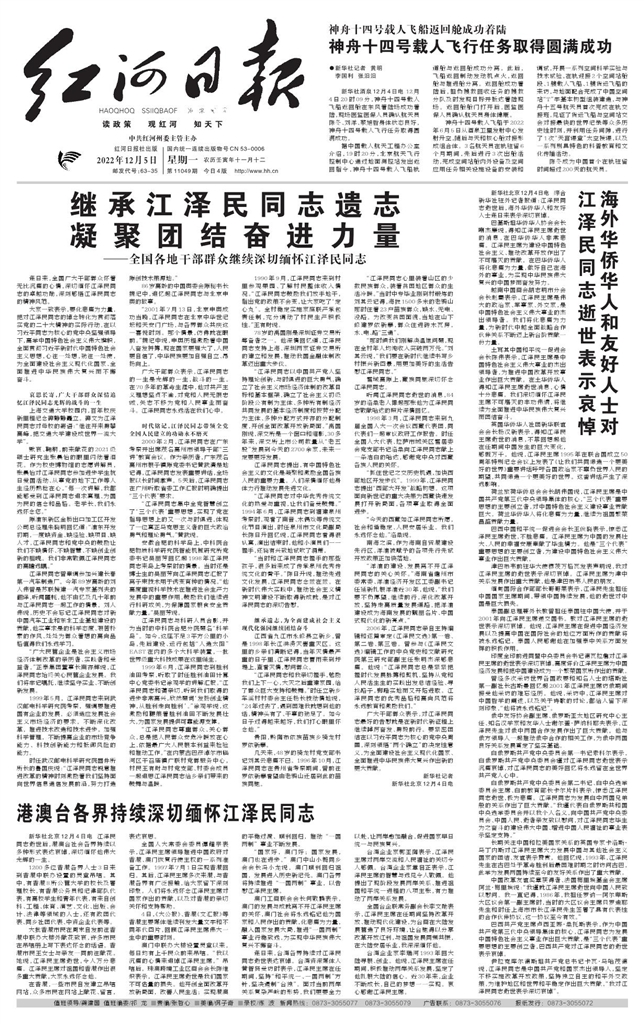 - 继承江泽民同志遗志 凝聚团结奋进力量 连日来,全国广大干部群众怀着无比沉痛的心情,深切缅怀江泽民同志的卓越功勋,深刻感悟江泽民同志的精神风范。 大家一致表示,要化悲痛为力量,把对江泽民同志的悼念转化为贯彻落实党的二十大精神的实际行