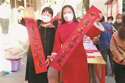 在建水县,该县老年体协、县老年大学联合开展迎新春老年书画作品展暨写春联送春联活动。活动现场,书画老师们在一张张书桌前凝神运笔,挥毫泼墨书写春联,为群众送上火红的新春祝福,为即将来临的春节增添了浓浓的年味。活动当天向群众送出春联200副。