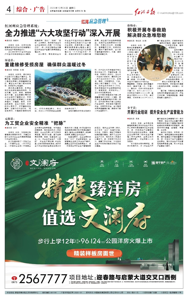 - 重建维修受损房屋 确保群众温暖过冬 ●通讯员 何昌福 文/图 本报讯 近年来,屏边县各级各部门切实整合灾害防治、地震安居、房屋搬迁政策优势,全力推进受损群众房屋重建或维修,真正让受灾群众感受到党委、政府的关心和温暖。