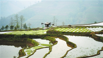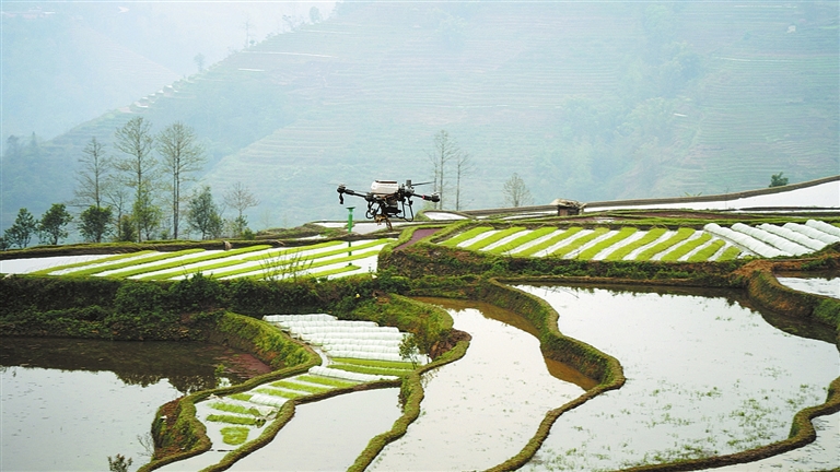 “我们一直在探索梯田水稻的高效种植模式。2023年,在马街乡首次示范推广了120亩的‘无人机+机械化’高效水稻生产技术,取得了显著成效。无人机播撒的水稻品种,平均亩产量比传统种植方式增产超过30%,不仅提高了种植效益,还为种植户带来了实实在在的收益。”黄冲说。