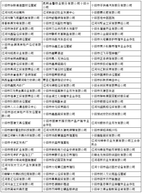 根据中国农业银行总行《关于加快推进新时代网点转型的实施方案》及《中国农业银行网点转型工作指引(试行)》关于推进网点智能化转型的要求,个旧市支行经研究决定,对中国农业银行个旧人民路支行进行网点撤并。为做好客户服务工作,原中国农业银行个旧人民路支行对公业务全部撤并入中国农业银行个旧市支行营业部办理。根据中国人民银行账户迁移的相关规定,银行账户迁移机构与开立单位结算账户的客户需要签订《结算账户迁移三方协议》。经多方努力,现有以下182户单位结算账户,因长期没有使用,无法联系到客户。为保证单位结算账户的顺延使用,请以下单位客户看到公告后,于2025年5月6日前到中国农业银行个旧人民路支行(个旧市人民路114号)办理签订《结算账户迁移三方协议》手续。逾期未办理的,我行将视同单位客户同意进行账户迁移。