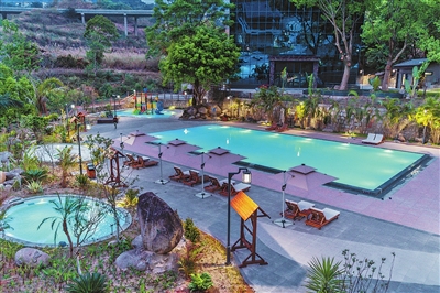 在个旧市工人疗养院,大大小小的泡池如蓝宝石般镶嵌于群山之间。“快看这水蓝蓝的,滑滑的。”孩童惊喜的呼喊声,道出了源自地心深处的“蓝宝石泉”的魅力。这温泉,不仅是自然馈赠的瑰宝,还是个旧市工人疗养院守护劳动者健康的核心所在。