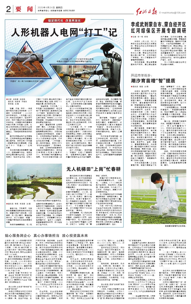 - 人形机器人电网“打工”记 ●记者 尚秋媛 初政艳 通讯员 祁彦君 子晓东 李田瑶 文/图 抬臂、对准、拧紧……走进南方电网云南红河供电局(以下简称“红河供电局”)220千伏吉安变电站内,人形机器人在工