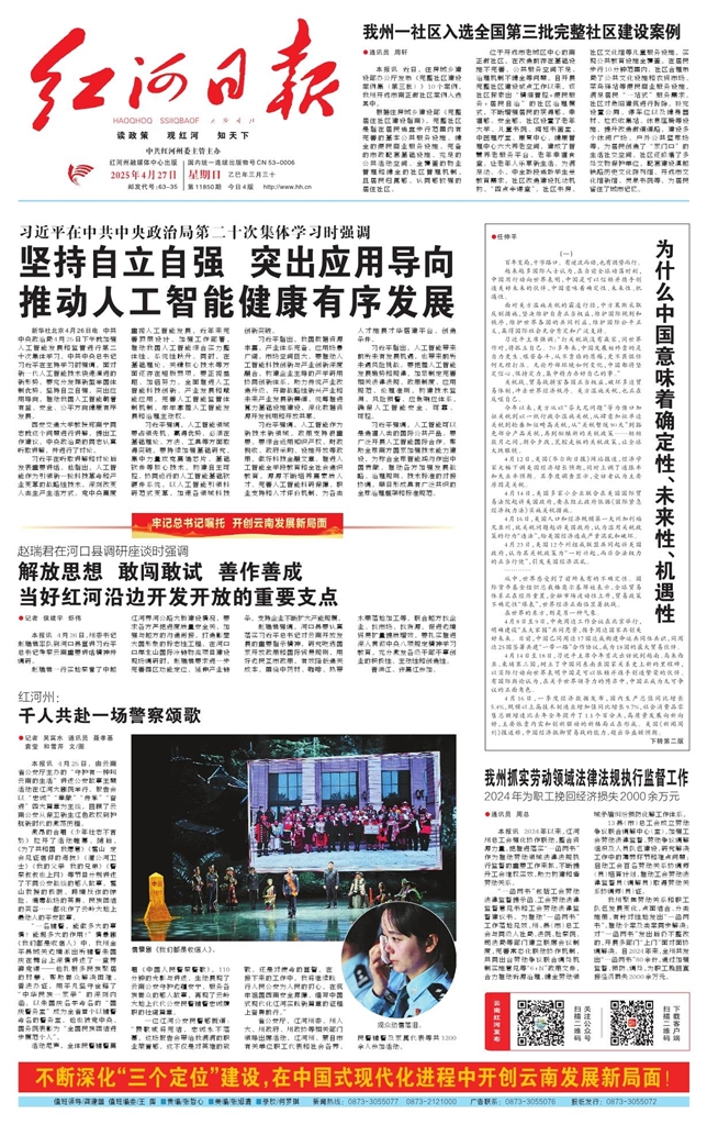 - 坚持自立自强 突出应用导向 推动人工智能健康有序发展 新华社北京4月26日电 中共中央政治局4月25日下午就加强人工智能发展和监管进行第二十次集体学习。中共中央总书记习近平在主持学习时强调,面对新一代人工智能技术快速演进的新形势,要充分发挥新型举国