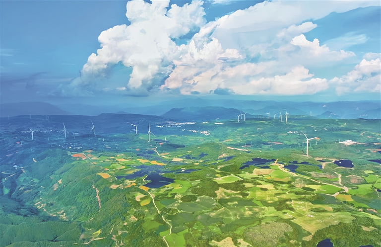 近年来,弥勒市全力推进绿色低碳示范区建设,实现三峡能源云南弥勒西风电项目成功并网发电。据悉,弥勒西风电场作为西南首个采用6.7兆瓦机型的山地风电项目,每年可提供14亿千瓦时清洁电力,同时带动地方就业和基础设施升级。图为航拍弥勒西风电场风机。