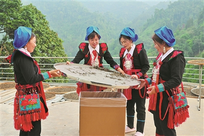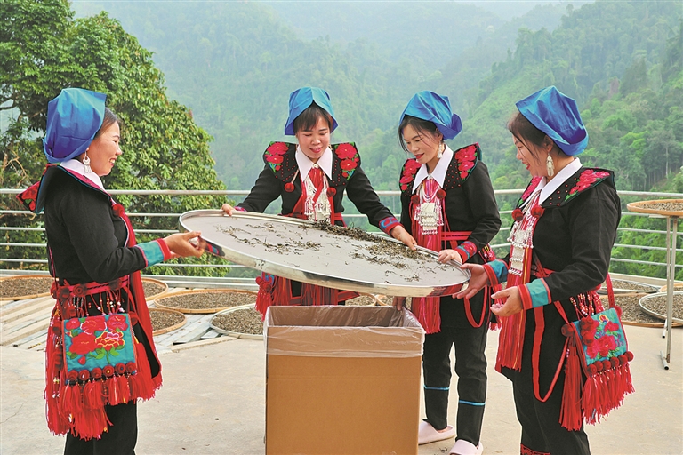 如今,茶坪一组的茶产品已销往北京、上海、成都等地,越来越多的茶客品尝到这份来自瑶寨的生态佳茗。