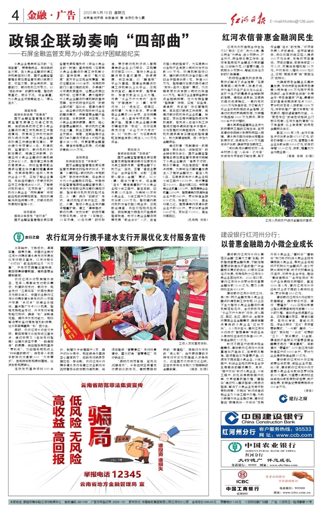 - 红河农信普惠金融润民生 红河州农村信用合作社始终以“服务‘三农’、助力小微、情系民生”为使命,在乡村振兴、产业升级、民生服务等工作中,主动承担起地方金融主力军的重任,以创新为笔、以普惠为墨,绘就服务乡村振兴、赋能实体经济
