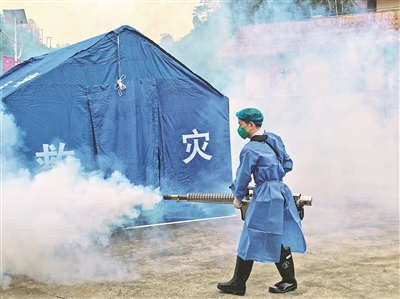 日前,河口县地震应急综合实战演练在莲花滩乡石板寨村举行。演练模拟莲花滩乡石板寨村附近发生5.8级地震,震源深度10千米。“灾情”发生后,莲花滩乡立即启动应急预案,应急响应、现场指挥、力量调动、抢险救灾等多个环节有序开展,取得了预期效果。图为工作人员在开展抢险救灾工作。