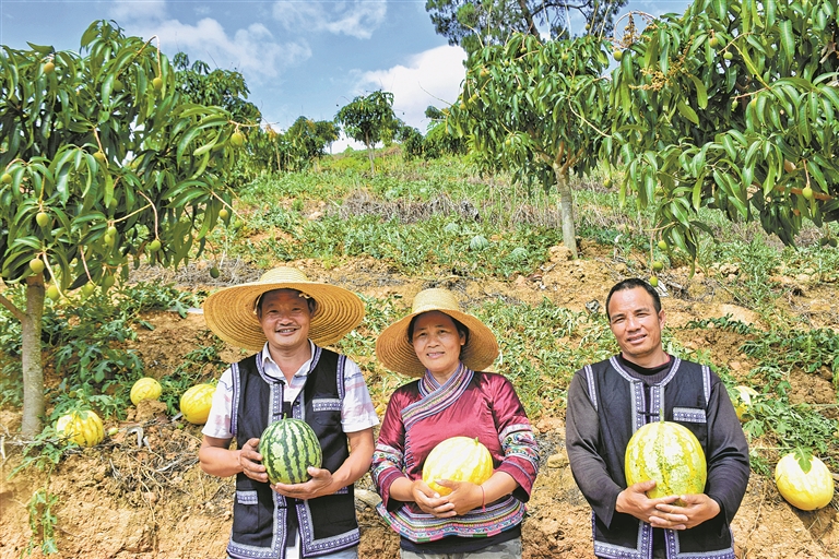 为进一步提高土地利用率和产出效益,江边乡创新推出西瓜与芒果立体套种模式,巧妙地利用两种作物不同的生长周期和空间需求,在同一地块上实现高低两种作物协同生长,成功实现“一地双收”“一地双优”的产业突破,让种植户增收。