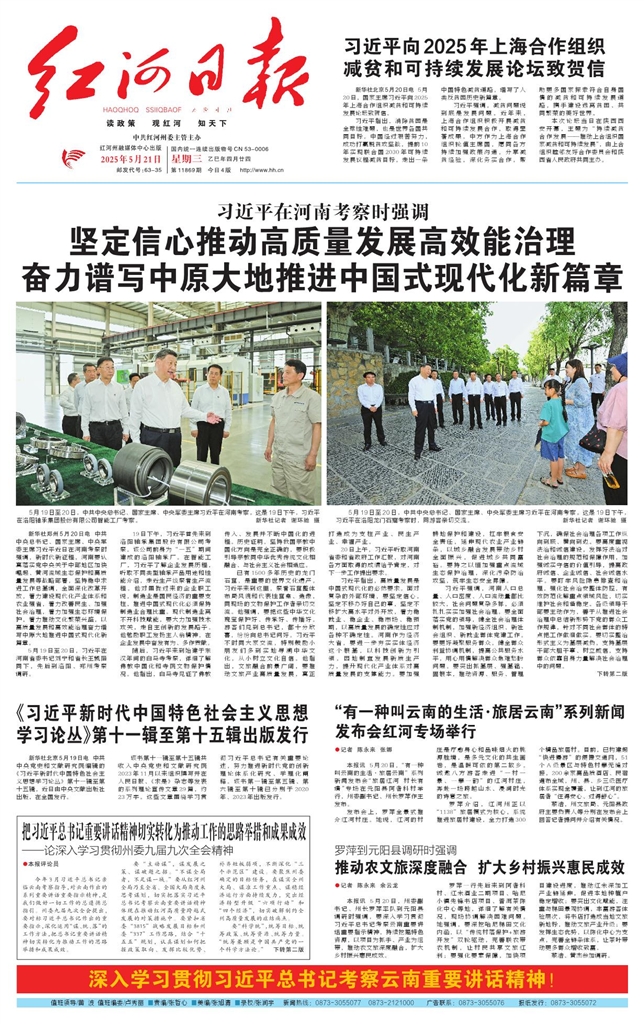 - 坚定信心推动高质量发展高效能治理 奋力谱写中原大地推进中国式现代化新篇章 新华社郑州5月20日电 中共中央总书记、国家主席、中央军委主席习近平近日在河南考察时强调,新时代新征程,河南要认真落实党中央关于中部地区加快崛起、黄河流域生态保护和高质量发展等战略部署,坚持稳中求